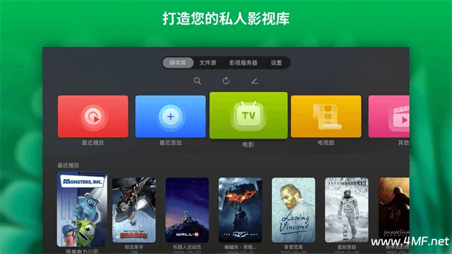 有自己的媒体库管理器,并支持用美观简洁的界面展示视频的清单。