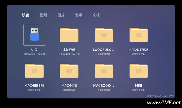 如果未弹出,可在电视首页最顶部,按“上”键,找到 U 盘。