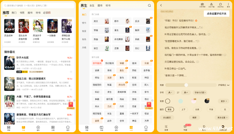 - 听读双模式解锁:突破原版听书限制,任意书籍均可切换听书模式,解放双眼,适配通勤、做家务等不便看书的场景。