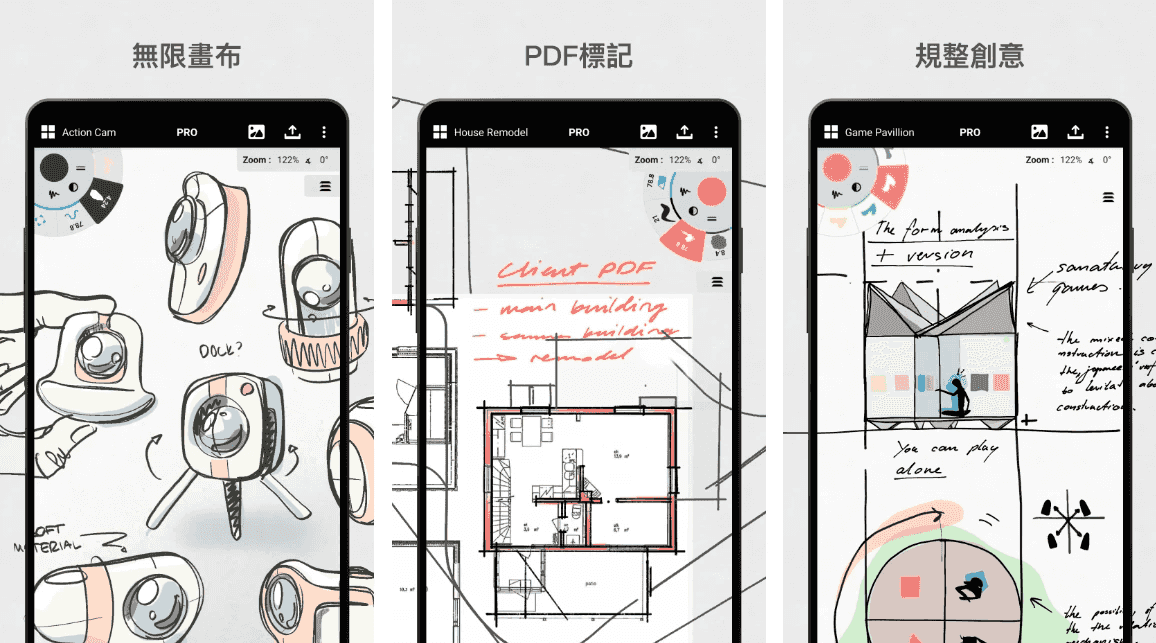 - 多样化创意适配功能:自带自动演示模式,适合和团队实时沟通设计思路,也可当作虚拟白板使用;支持扭曲图片、调整线条等细节操作,还能轻松制作故事板、涂鸦笔记,适配建筑、时装、游戏艺术等多个领域创作。