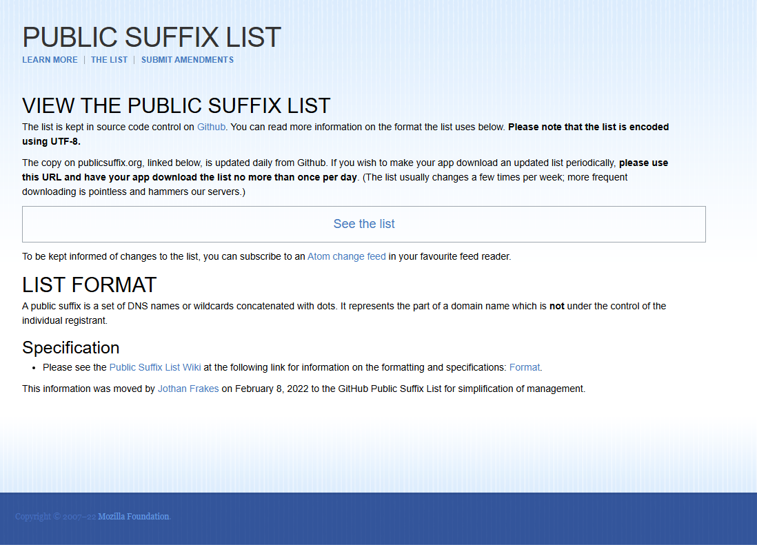 - 最新列表: https://publicsuffix.org/list/public_suffix_list.dat