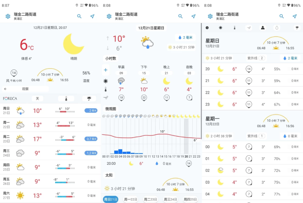 - 小时级预报:细化到每 3 小时更新一次天气数据,清晰展示单日气温起伏、降水概率变化,适合安排短途出行、户外作业。