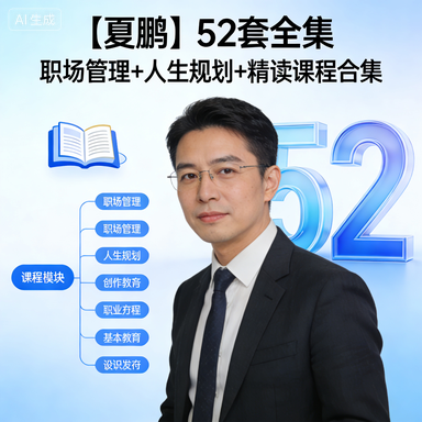 核心亮点:由夏鹏亲授,以 **“实战技能 + 认知升级 + 经典赋能”** 为核心,课程覆盖职场沟通、情绪管理、职业规划、副业变现、商业认知等全维度能力,搭配多本经典书籍精读与人生管理方法论,是一套从职场生存到人生破局的一站式成长方案。