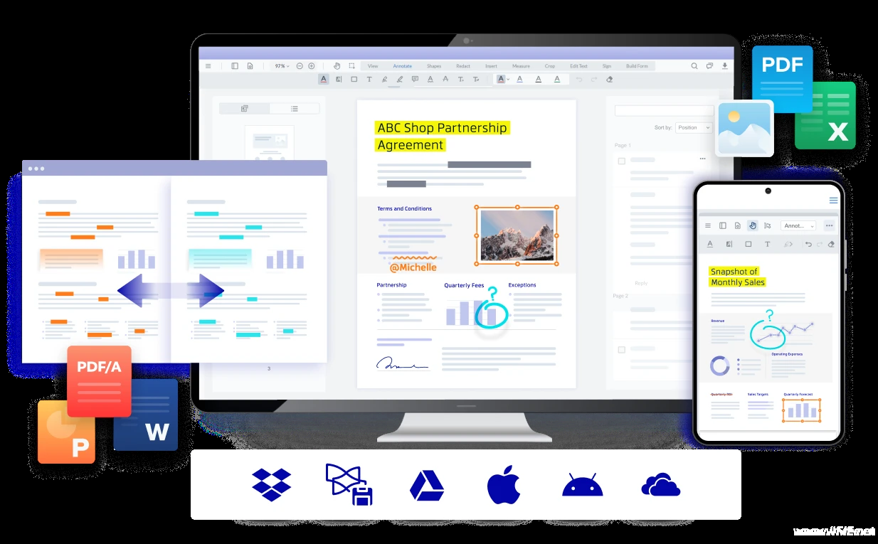 - 实用附加功能:创建空白 PDF 记录灵感,支持云端(Dropbox、Google Drive 等)自动同步,内置强大文件管理器;
