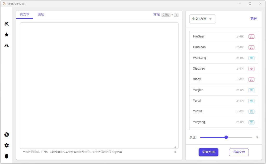 VPot 是一款免费实用的文字转语音工具,绿色版免安装即用,支持多语种语音合成,涵盖普通话、英语、日语及港普、台普等特色语音,功能强大且操作简单,轻松实现文本到语音的快速转换,适配各类语音合成需求。