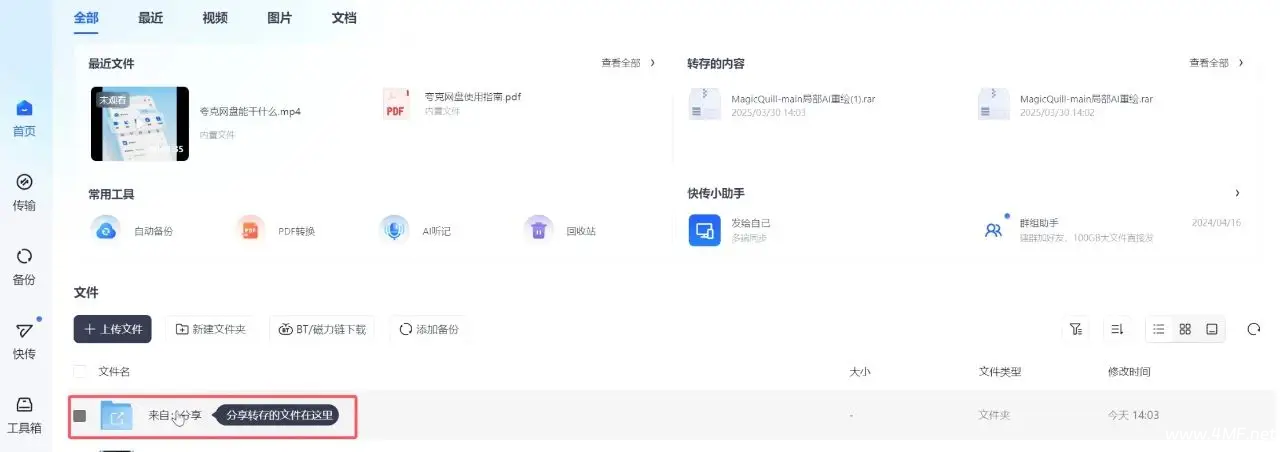 先把资源存进自己的网盘账号中。 - 打开夸克网盘客户端,进入“我的网盘”