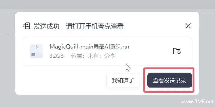 不用扫码,直接发送记录就行。 - 进入「我的 > 发送记录」,找到刚刚的文件,点「下载到本地」