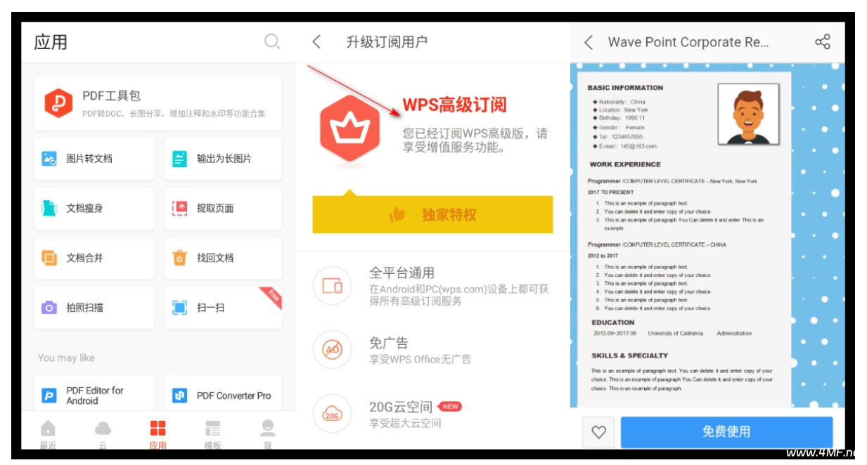 2、免广告,所有高级功能及在线高级模板免费用