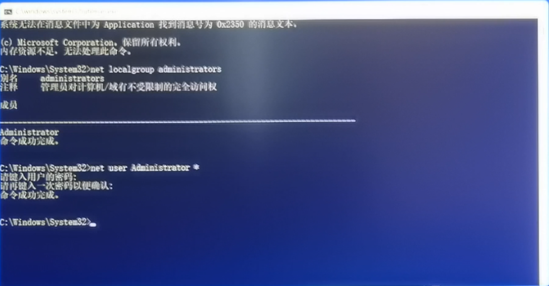 接着输入重置密码的命令:net user 用户名 * ,这个星号要小写的,然后回车,这个时候要求你重新输入一个新的密码,这里我输入12345,这里输入密码不会显示字符的,所以不是你键盘有问题,直接输入就行,完成之后会显示命令成功完成。