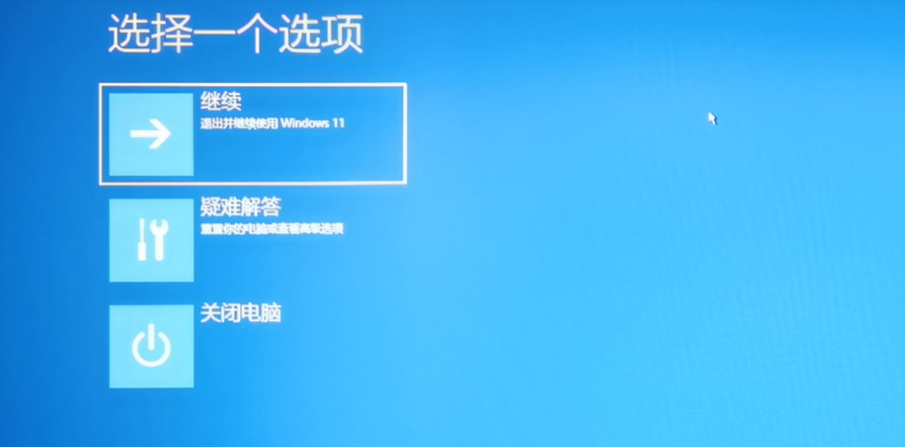 首先我们打开电脑,来到系统登录界面,然后一直按住shift键不要松开,点击右下方的重启按钮,直到出现系统修复的这个界面,如果在这个操作过程中出现蓝屏就按照前面步骤多重复几次就可以了。