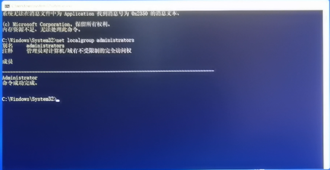现在我们输入一个命令来查看电脑的管理员账户名:net localgroup administrators回车,这里会显示出电脑的用户名。