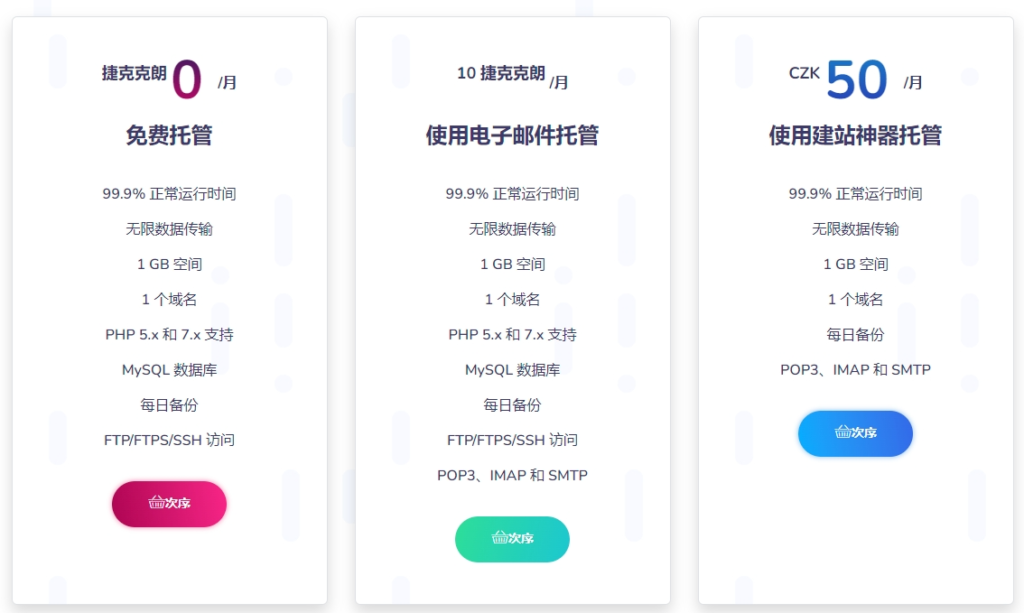 HZ.CZ是捷克首都布拉格的Gransy公司旗下虚拟主机服务商,其提供的免费虚拟主机具有1GB容量,流量不限,支持PHP(可切换版本),MySQL数据库,仅支持FTP方式上传管理文件,可以绑定自己的域名,能够一键安装WordPress。