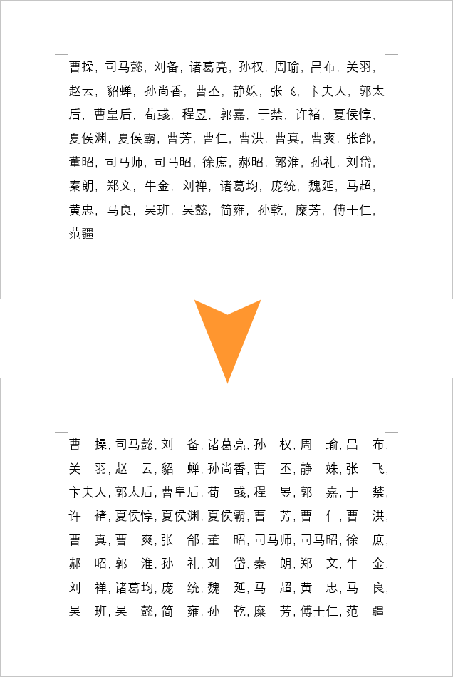 这样,即使文档中姓名数量再多,也能一次性精准对齐。