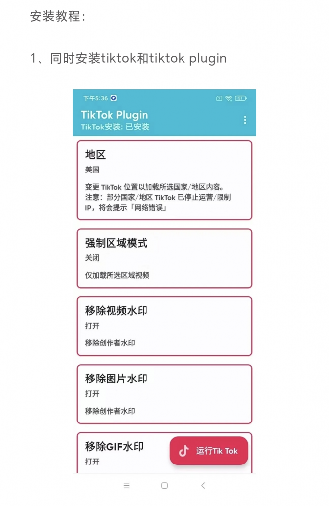 备注:TikTok插件(TikTokPlugin)可以自定义设置,用于配合此修改版选择全球区域!